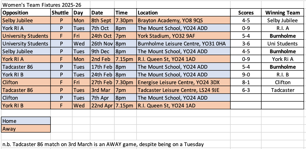 WOMENS TEAM LEAGUE FIXTURES Womens Fixtures 25-26Download Share this: Share on X (Opens in new window) X Share on Facebook (Opens in new window) Facebook Like Loading...